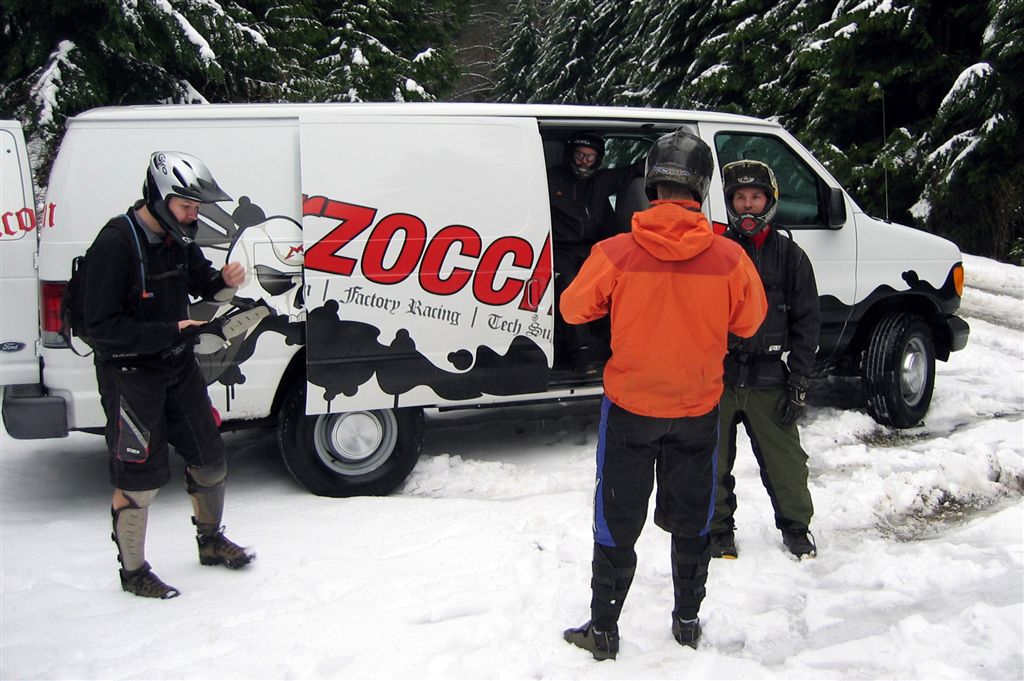 Here’s a shot from last month with the Marzocchi crew. Tom and Bryson and the gang were in town to open the new Marzocchi service center, so we loaded up their rig and went for a snow ride. A bit of an industry frenzy, with Cory Leclerc, Noel Buckley, Trevor Porter, Richie Schley, etc. came out to slither around the snow.