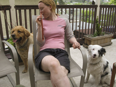 It’s after midnite, and Brett Tippie is at my house. See how excited he is? Well, of course there’s a story. That t-shirt goes back to the first time we met. I was working at the old Cove shop and had gotten my mitts on one of the very first Kona full suspension bikes. Tippie walked in looking for a ride and although I’d never met him, I lent him the Kona. Tihs was just something I thought of as professional courtesy. He came with good credentials, but this was still before Kranked, before Fro-Riders, before all that.