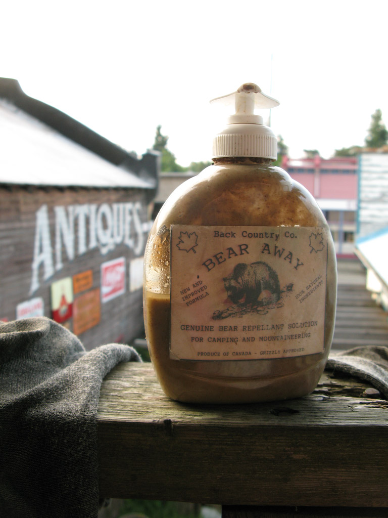 Now it’s time to talk about Flash and the Bear Repellent. See, some people are sort of unsure about bears and are afraid of them. This can lead to an excellent opportunity to “wind up” someone. In this case, Flash was led down the path of smothering onne’s body parts with a mixture of rotten pears, garlic, vodka, and pretty much anything else that was destined for the compost heap. Good times….