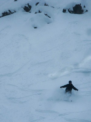 It was all face shots today. Nobody around either. I got first tracks down runs ALL DAY LONG. Here’s a couple of boarders going down the Great Wall.