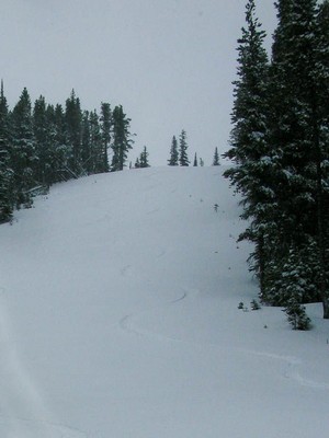 ..and here’s some of my tracks. This was taken at 2:30 in the afternoon. The other tracks on the left are mine from about 11 am. I don’t know why nobody skis here, but I like the fact that they don’t. More for me.