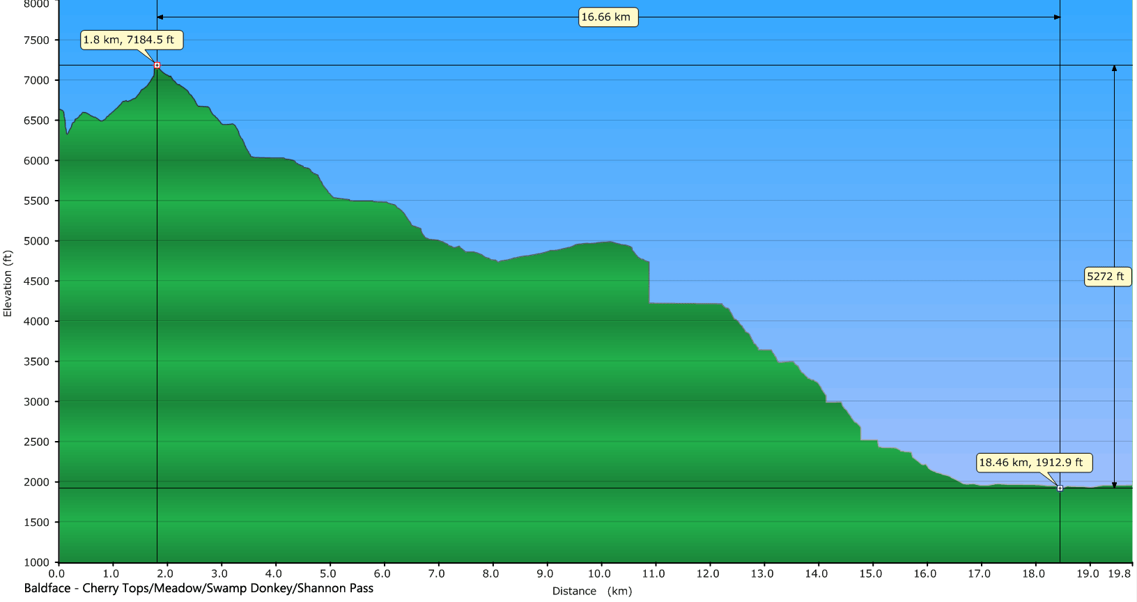 Our destination is the top of BaldFace. This sure beats the usual approach of an hour up the gravel road and another 40 minutes of hike a bike to Cherry Tops. An 8 minute flight with views of the mountains (and illegal crops dotting the mountainsides) is far more preferable.