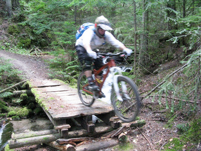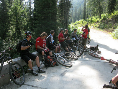 There’s been a lot of work on the trails up there this year. Much improved over last time I rode it. Here we are back at the creek, having a snack and preparing for the climb up to Shannon Pass.