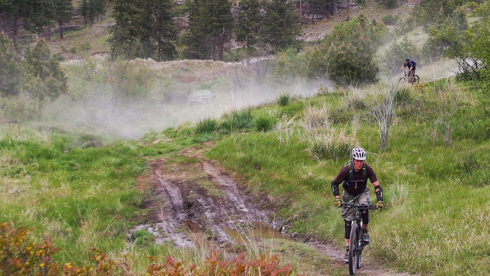 I was supposed to be shuttling all day actually, but a last minute transmission failure in the van meant that I was down to a pickup truck. Good thing bikers are resilient. People were far more concerned with the weather forecast. This is what a rainy morning looks like in the Okanagan…