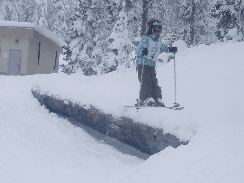 It’s a blast skiing with the young’ns. They like to do all kinds of goofy things on skiis. Here’s Cassandra about to crash right on to Jake(? I think it’s Jake..). That’s one tricky log ride. A little North Shore action winter style for ya.