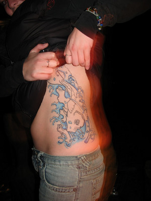 If you’re really gonna go Full Boar, make sure you do it right. Like by staying up late comparing tattoos by the fire. This fine example would be a carp.