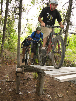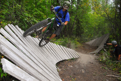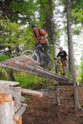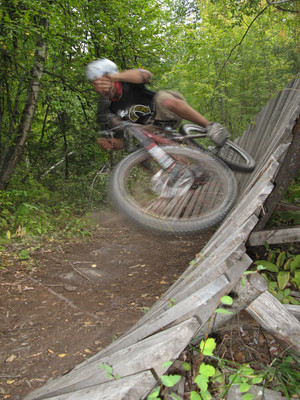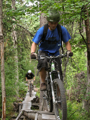 Now we were down a ways, so we traversed across on Lumberjack and climbed back to Alice Lake via Jack’s trail, and then up Debeck’s Hill for the final couple of trails. That climb is tough, but always worth the effort. Just ask Kristian as he rides the edge on Rigs of Zen.