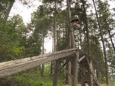 There’s also a random stash of skiis out there. I’ve got a pair of those bad boys I still use (Volkl G4 188’s). That’s a real shame leaving serious weapons like that out in the bush. Ethan wanted to take a run right here and now.