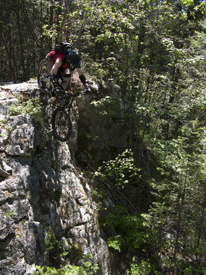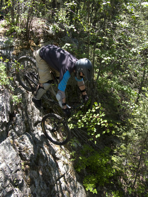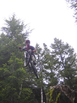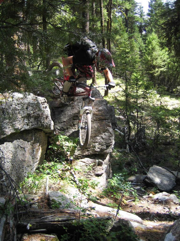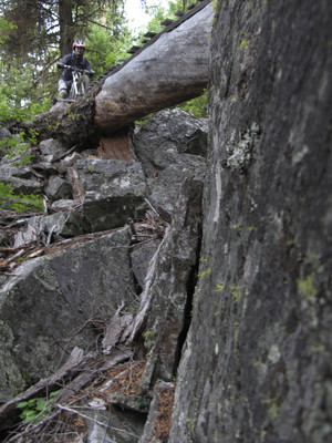 We cleaned up some garbage on our first lap, and we also fixed the ramp over this erratic boulder. Mike found his mojo on top of this one.