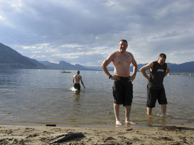 And the traditional dip in the lake. Still a little cold there, but should be a lot warmer in a day or two.