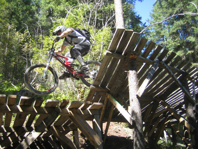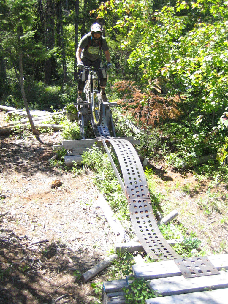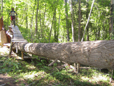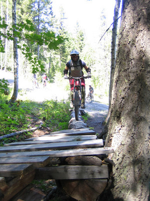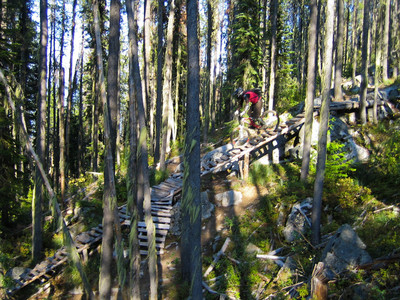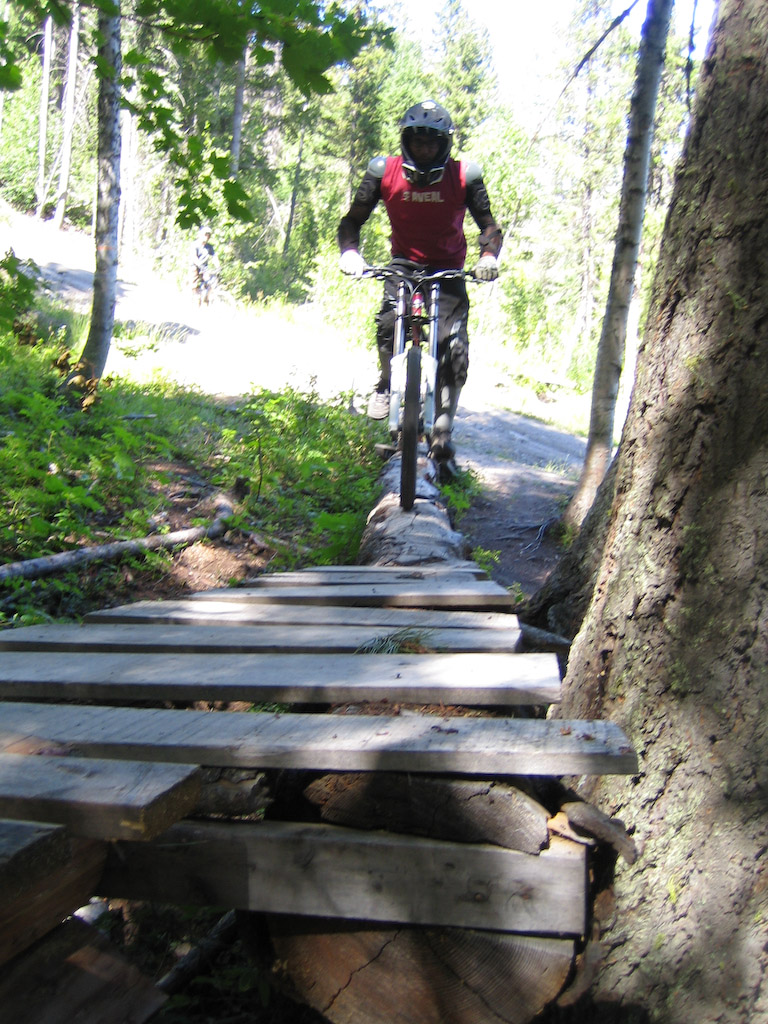 Not much in the way of stunts up there, but there’s the occasional bridge where necesarry. They get so much snow up there that a little plank system isn’t gonna last very long.