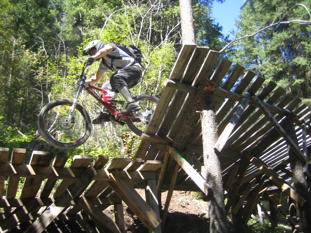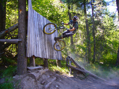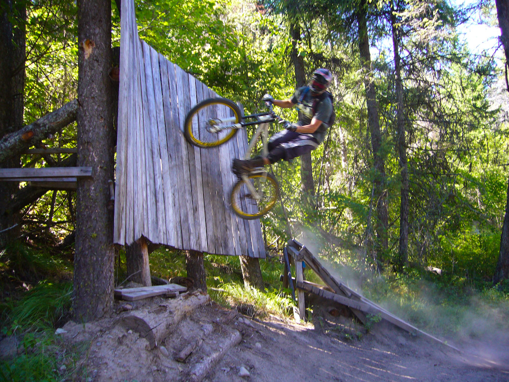 Oh right, that Wade guy was there too. These trails were cut by another freeride legend by the name of Mike Kinrade. We were looking at some of the jumps that Mike’s been building and even the illustrious Wade was struck by the HUGE size of the hits. Like 60 foot stepdown gaps in the alpine huge.