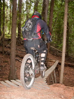 Unfortunately, McDougall has been pretty much wrecked at this point by quads. it’s still fun, but it’s disappointing to see it change from singletrack to dirt road in a couple of seasons. Pretty selfish of the 2 or 3 quadders who have decided to destroy it for everyone else, but that’s how quadders are I guess. Here’s one of the few sections that hasn’t been totally hacked on yet, but by the time you read this it should be full on double-tracked out.