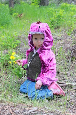 Wildlife sighting, one small purple dinosaur at the bottom of the mountain. Those things are endangered, eh?