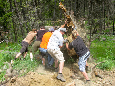 The rest of us moved huge rocks around and filled in all the holes.