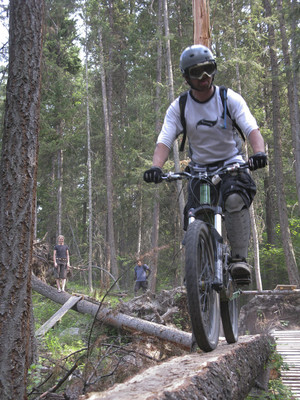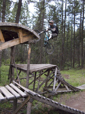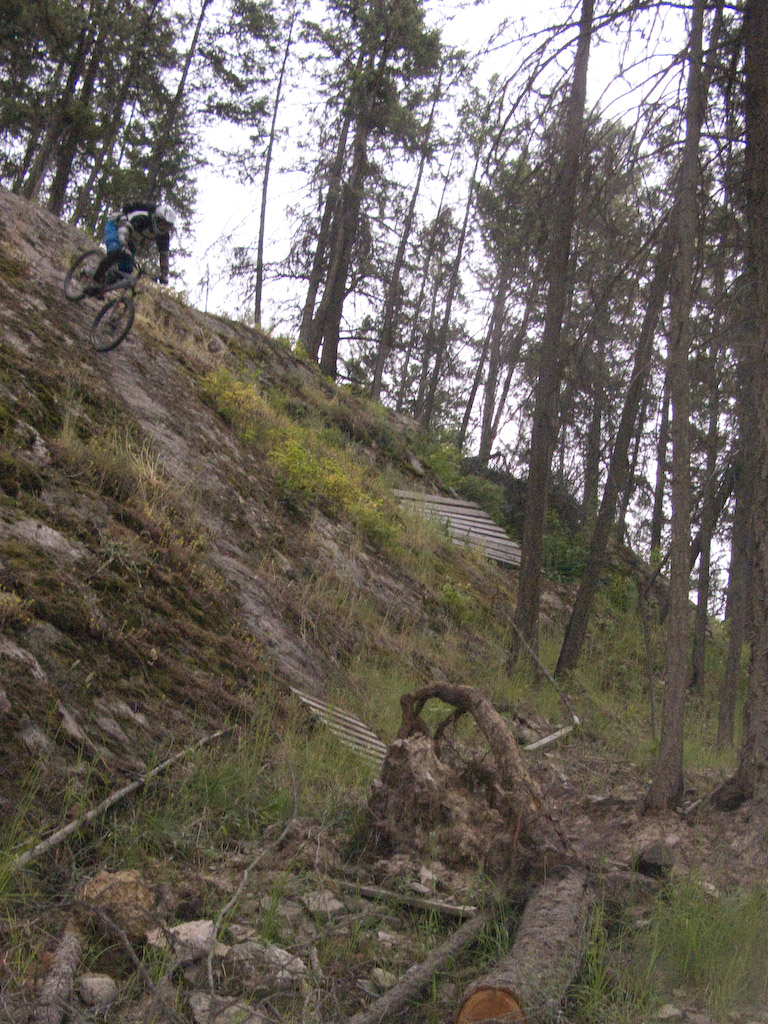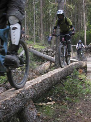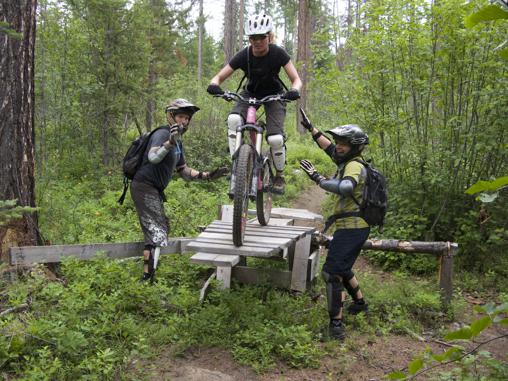 Gesundheit. Ok, we crawled our way out of a bit of a hangover from yesterdays adventures and went over to Gillard again today. We thought we’d get Lindsay (whe’s new to the riding game) a bit of a confidence builder. Here she is sneering at our spotting attempts on a nice teeter.